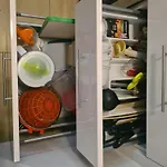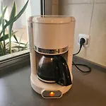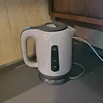 I denne ferielejlighed er der et fuldt udstyret køkken med el elkedel, kaffemaskiner/tekedler og et køleskab.